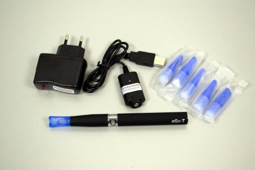 1 USB Schnell-Ladegerät 1 Aufbewahrungsbox und 5 leere Tankdepots in Blau 1 EU- Netz Charger mit USB Anschluß 1 Akkus á 1000mAh 1 Verdampfer - Atomizer (mit blauer Schutzkappe)