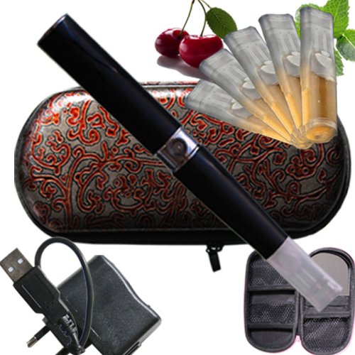 Etui Red Tendril mit Schminckspiegel, Travelcharger, USB Aroma MB Tabak 5 Depots mit e-Liquid ohne Nikotin, Nikotinfrei Farbe Schwarz Eine komplette elektronische Zigarette LiqC Ego-T