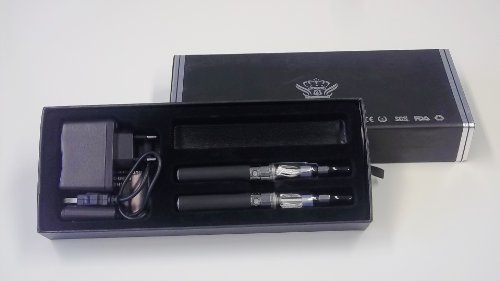 2x elektronische Zigarette in zeitlos schickem Schwarz C4 Verdampfer mit langem Docht 650 mAh Akku USB Ladegerät an Steckdose und PC mit USB Port nutzbar deutsche Bedienungsanleitung