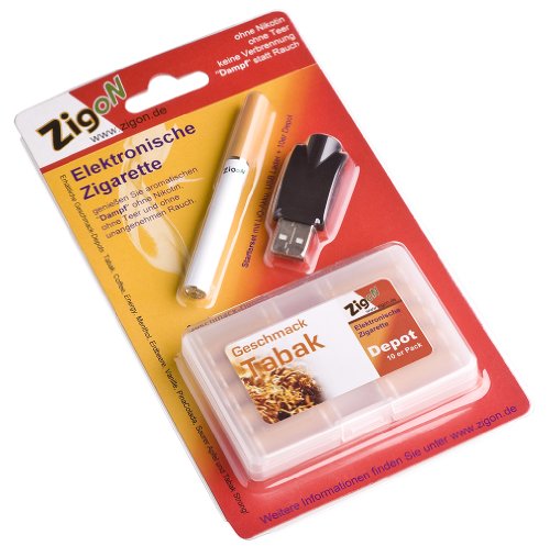 E-Zigarette Starterset von ZigoN mit 10er Pack Depots Geschmack Tabak - nikotinfrei. Große Aromadepot Auswahl Feature