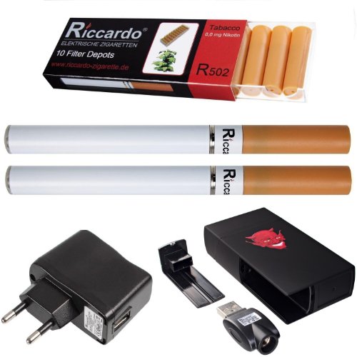Nur für kurze Zeit - Auslieferung des XXL Sets jetzt mit der beliebten Riccardo Aufbewahrungsbox "Sonderedition Devil". Die Box bietet Platz für : 2 komplette Zigaretten - 2 Akkus incl. Atomizer und 4 Depots fast wie eine Echte - die elektrische Zigarette ist vom Aussehen her der klassischen Zigarette nachempfunden, so dass ein Umstieg nicht schwer fällt. Die Glut einer normalen Zigarette wird durch eine LED-Lampe nachempfunden. Nach einer kurzen Übungsphase ist auch die Rauchentwicklung der echten Zigarette sehr nah. uneingeschränktes Rauchen - ob im Büro, im Auto oder an öffentlichen Plätzen, die E-Zigarette macht es wieder möglich. Falls es nicht durch das Hausrecht untersagt ist, dürfen Sie diese Zigarette überall rauchen. die in der Box abgebildeten Artikel sind beispielhaft und nicht im Lieferumfang enthalten Gesundheit - der größte Vorteil der RICCARDO e-Zigarette ist, dass der Raucher mit diesen Depots weder Teer noch Nikotin zu sich nimmt. Gleichzeitig hinterlässt die E-Zigarette auch keinen unangenehmen Geruch an Kleidung oder Händen und sogar der sogenannte Raucher-Atem ist weg.