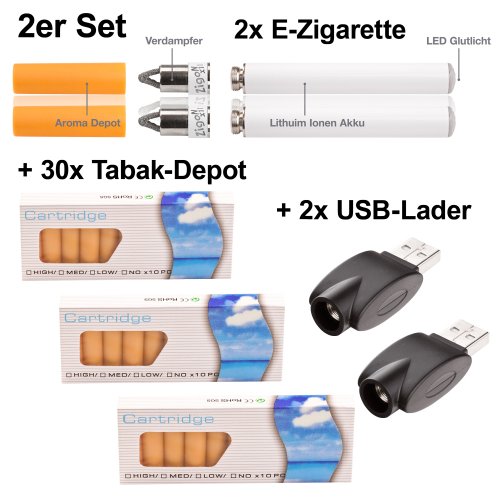 2er Starter-Kit elektronische Zigarette von ZigoN - im günstigen Set inklusive 30x Liquid Depots mit 0,0 mg Nikotin Geschmack Feature