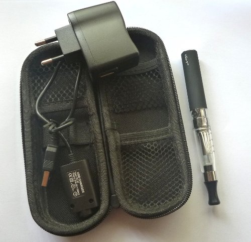 Lieferumfang: 1 Ego (= 650 mAh Akku, 5 Klick Schaltung,mit Crystal Button (*neu) : der Knopf leuchtet blau bei Druck), Clear V2 Atomizer, USB Schnellladeadapter Steckdosenladeadapter, eGo-Hardzippercase (mit Netzfächern) Akkufarbe: schwarz, Verdampfer-Farbe: Clear, 8 lange, feinverarbeitete Dochte das Single Set ist in geprüfter, guter Qualität, langlebiger Akku mit "eGo T TM" Branding ########### Das Single Set ist NICHT von Joyetech: diesen Spaß hat sich auch bei diesem Artikel ein Mitanbieter erlaubt: es handelt sich um ein eGo T TM Set !!! ############ Ego Set mit Clear Atomizer/ E-Zigarette Single Set / eGo T-Serie
