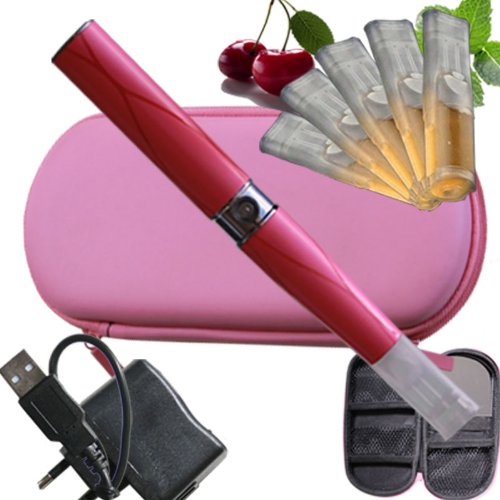 5 Depots mit e-Liquid ohne Nikotin, Nikotinfrei Aroma Vanille Etui Pink mit Schminckspiegel, Travelcharger, USB Farbe Pink Eine komplette elektronische Zigarette LiqC Ego-T