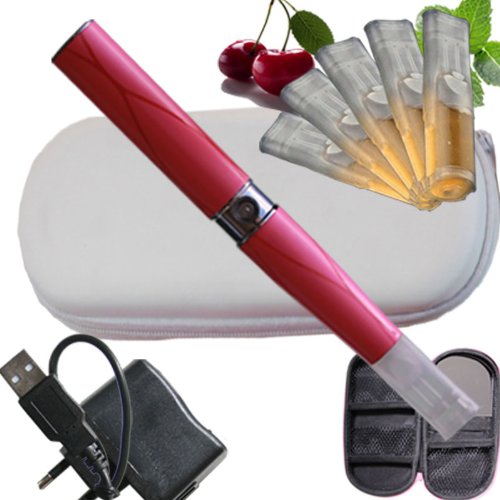 5 Depots mit e-Liquid ohne Nikotin, Nikotinfrei Eine komplette elektronische Zigarette LiqC Ego-T Etui Weiss mit Schminckspiegel, Travelcharger, USB Farbe Pink Aroma Vanille