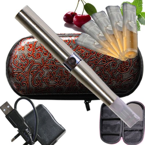 Aroma Vanille 5 Depots mit e-Liquid ohne Nikotin, Nikotinfrei Etui Red Tendril mit Schminckspiegel, Travelcharger, USB Eine komplette elektronische Zigarette LiqC Ego-T Farbe Stahl
