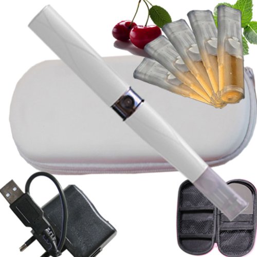 Farbe weiss Eine komplette elektronische Zigarette LiqC Ego-T Etui Weiss mit Schminckspiegel, Travelcharger, USB Aroma MB Tabak 5 Depots mit e-Liquid ohne Nikotin, Nikotinfrei