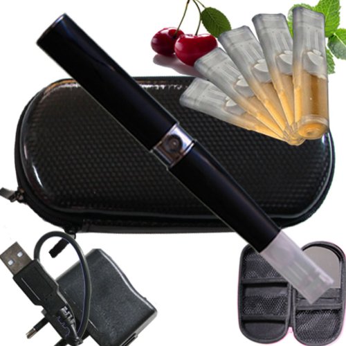 Farbe Schwarz 5 Depots mit e-Liquid ohne Nikotin, Nikotinfrei Etui Racing schwarz mit Schminckspiegel, Travelcharger, USB Aroma Schokolade Eine komplette elektronische Zigarette LiqC Ego-T