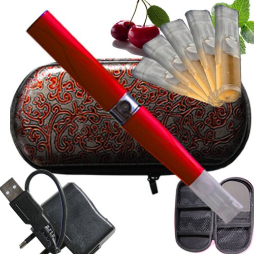 Etui Red Tendril mit Schminckspiegel, Travelcharger, USB 5 Depots mit e-Liquid ohne Nikotin, Nikotinfrei Farbe Weinrot Aroma MB Tabak Eine komplette elektronische Zigarette LiqC Ego-T