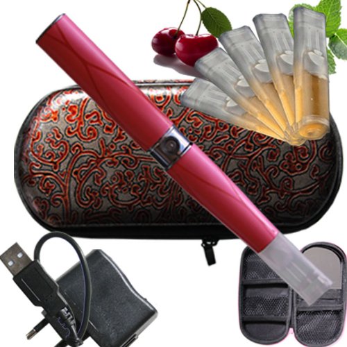 Aroma Virginia Tabak 5 Depots mit e-Liquid ohne Nikotin, Nikotinfrei Etui Red Tendril mit Schminckspiegel, Travelcharger, USB Eine komplette elektronische Zigarette LiqC Ego-T Farbe Pink