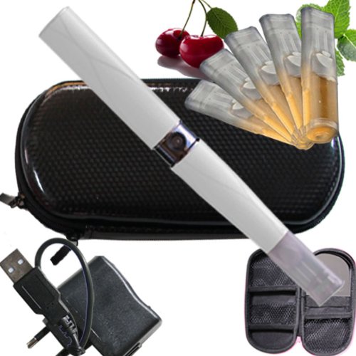 Aroma Virginia Tabak Eine komplette elektronische Zigarette LiqC Ego-T Farbe weiss 5 Depots mit e-Liquid ohne Nikotin, Nikotinfrei Etui Racing schwarz mit Schminckspiegel, Travelcharger, USB