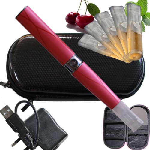 5 Depots mit e-Liquid ohne Nikotin, Nikotinfrei Eine komplette elektronische Zigarette LiqC Ego-T Etui Racing schwarz mit Schminckspiegel, Travelcharger, USB Farbe Pink Aroma Turkish Blend Tabak